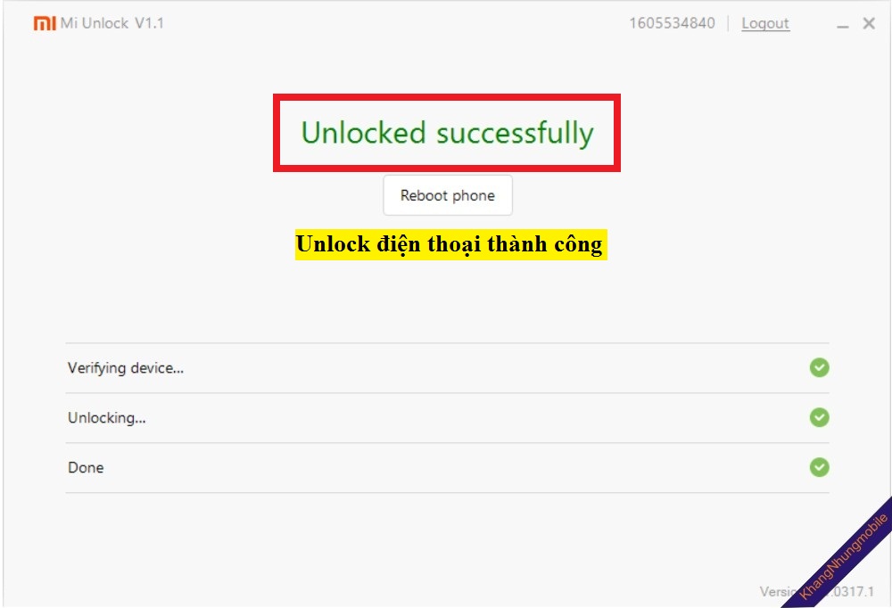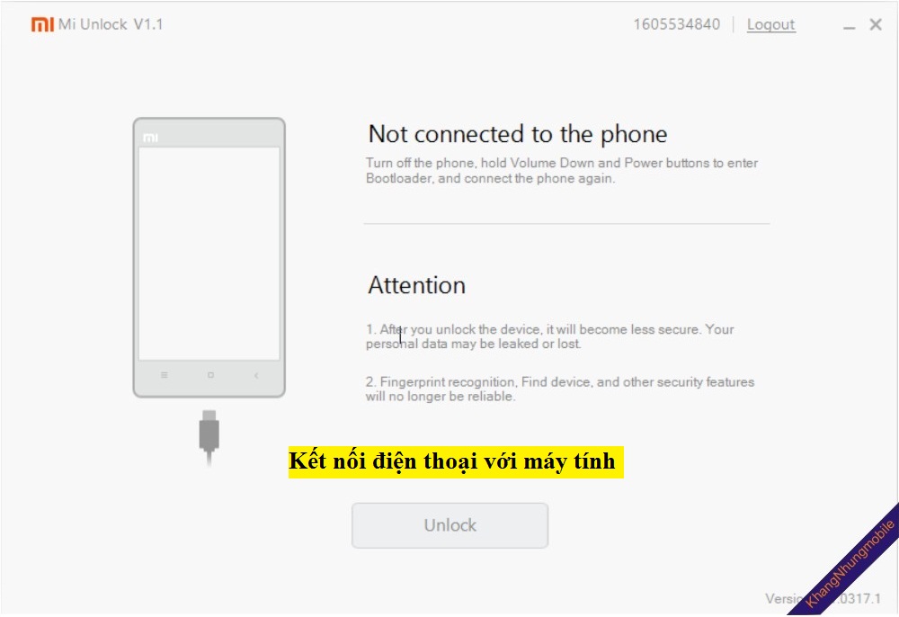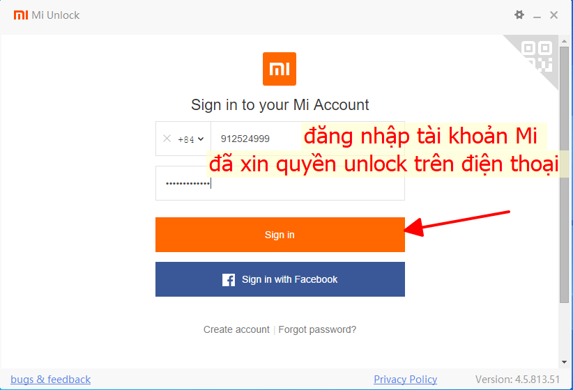 Bước 2: Tiến hành Unlock Bbootloader (Sau khi xin quyền Unlock và chờ 7 ngày)