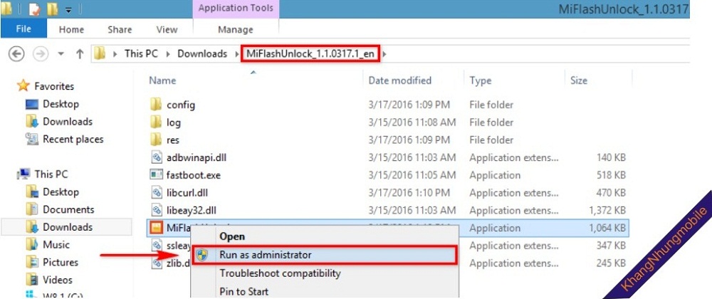 1, Giải nén, chạy file Mi Flash Unlock với quyền Admin