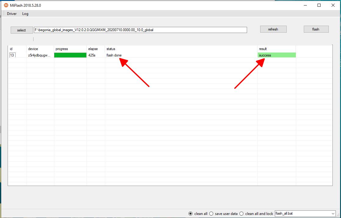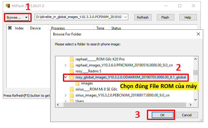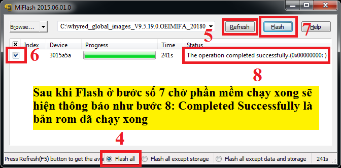 Bước 3: Tiến hành up rom bằng Mi Flash (bật chế độ FastBoot trên điện thoại để up rom)