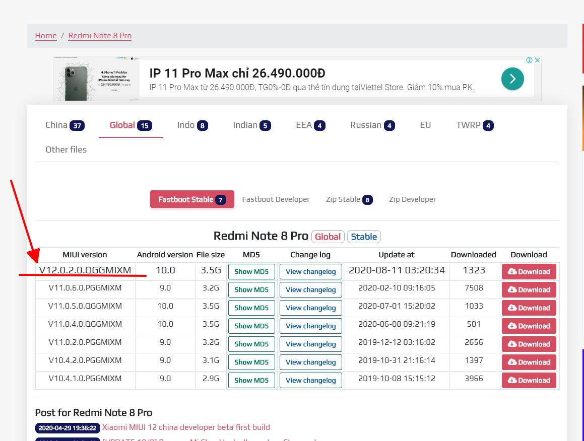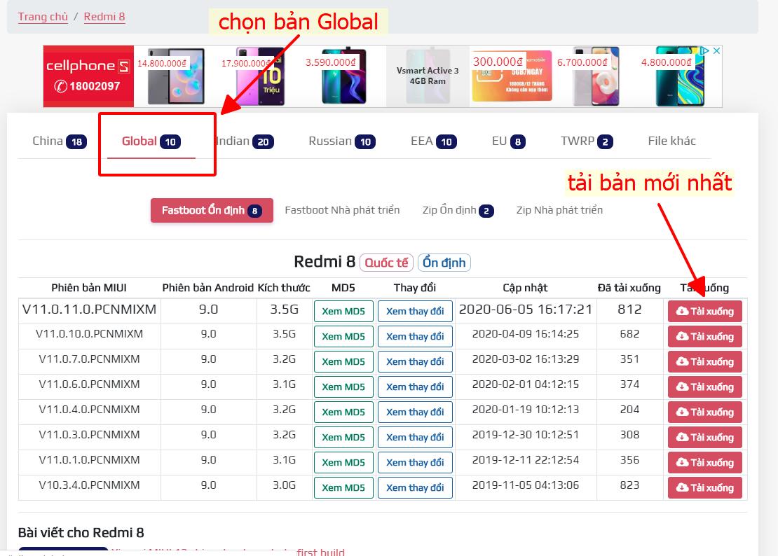 Chú ý : các đường link từ https://mifirm.net/ các bạn nhớ chọn bản ROM Global để tải đúng bản ROM quốc tế nhé !