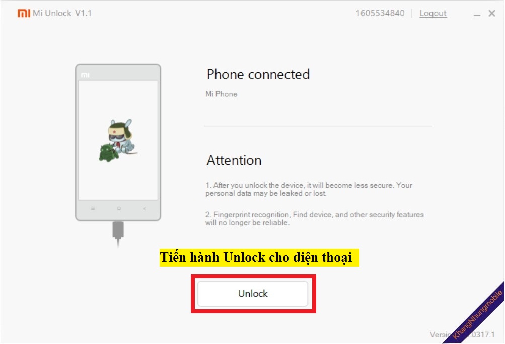 Mục 2: Tiến hành Unlock Bbootloader (Sau khi xin quyền Unlock và chờ 7 ngày)