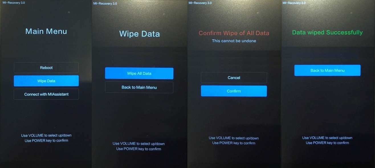 - Các dòng máy Mi 8 SE, Xiaomi CC9, Xiaomi CC9e máy sẽ ko tự vào TWRP bạn đợi lệnh chạy rồi giữ: nút nguồn + Tăng âm lượng