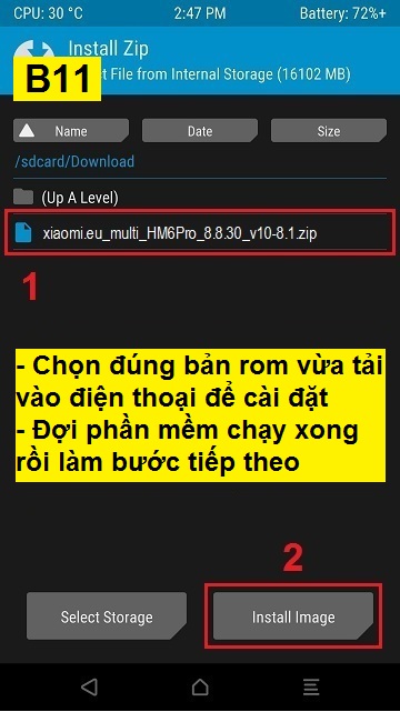 *Các bạn nên sạc 50% pin điện thoại và lưu lại toàn bộ dữ liệu cá nhân trước khi chạy rom