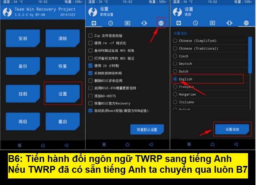 Bước 5 - 6: Đổi ngôn ngữ TWRP