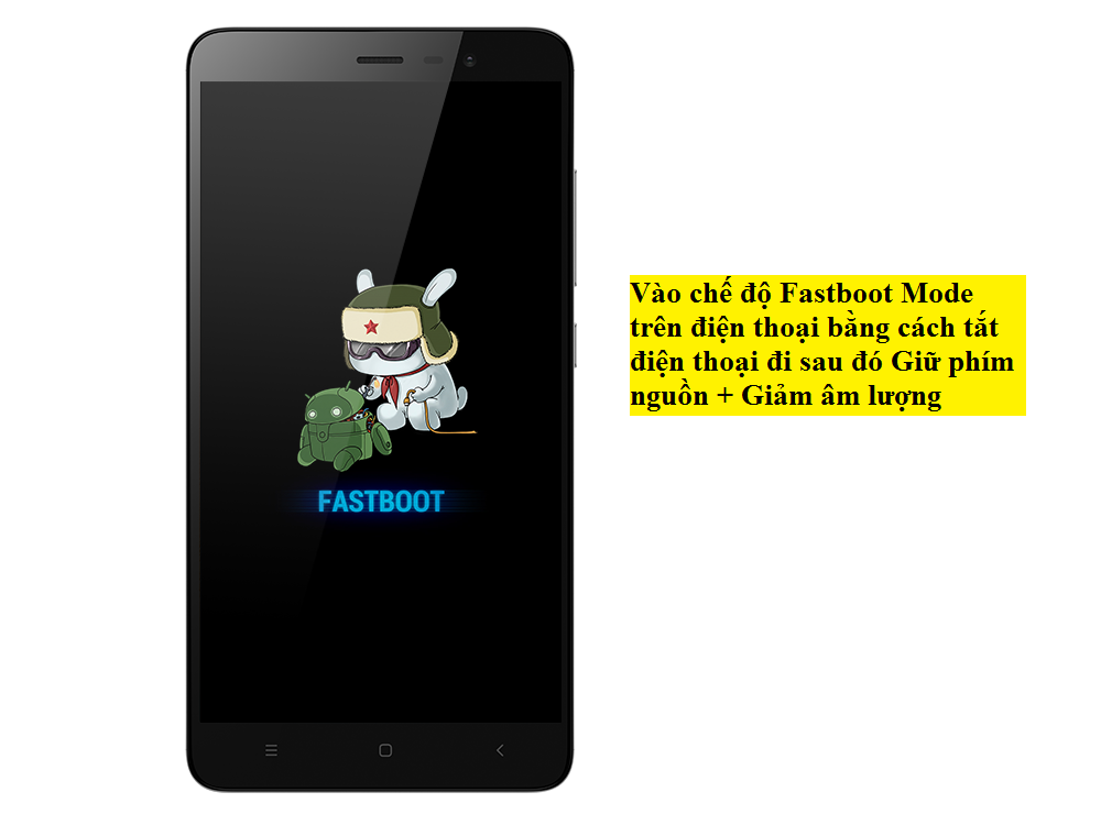 Bước 2: Trên điện thoại vào Fastboot (Giữ phím nguồn + giảm âm lượng). Rồi kết nối với máy tính