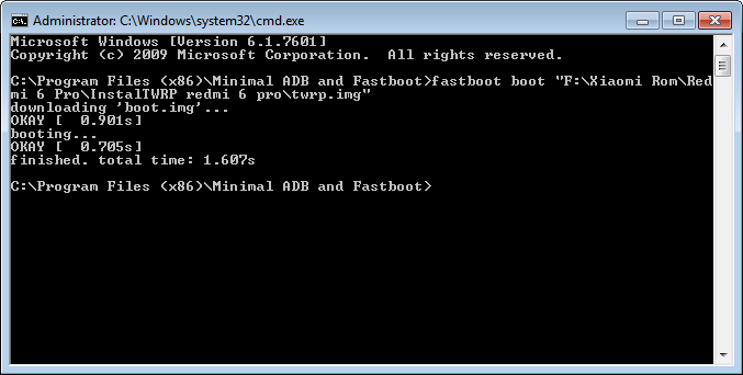 - Các dòng máy Mi 6X, Redmi 6 Pro, Mi Pad 4/ 4 Plus dùng lệnh: fastboot boot(cách)